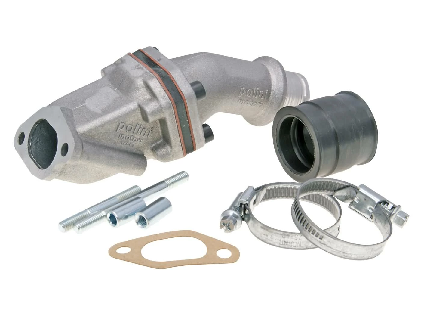 Polini Ansaugstutzen mit internem Membranblock und 2-Loch-Befestigung für Vespa 50 Special, Primavera 125 und Primavera 125 ET3 Smallframe Classic Roller in Verbindung mit dem 24mm Polini CP Vergaser 201.2402.