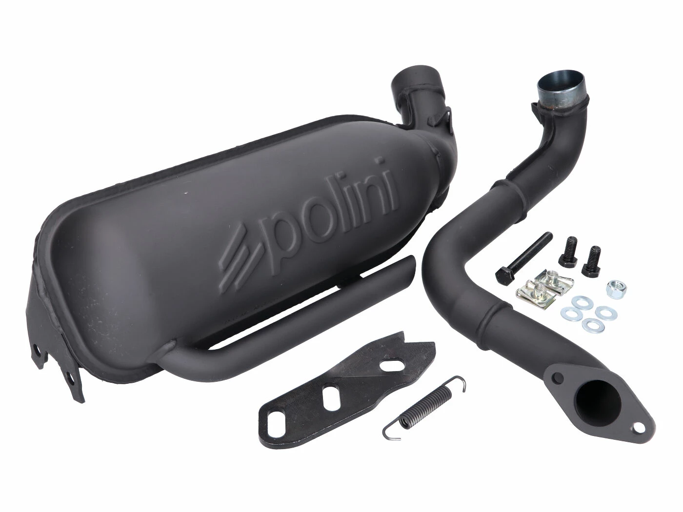 Polini hat mit diesem Auspuff eine leistungsstarke Alternative zu den gewohnten Rennauspuffanlagen in der 125ccm Klasse geschaffen. Folgende Vorteile liegen auf der Hand: Eine Leistungssteigerung ist schon bei einfachen Tuning Ausbaustufen spürbar und reicht bis zum 130ccm Setup. Die Anlage ist auch mit 3.50-10 Zoll Reifen zu montieren und passt sehr gut auf 50ccm Smallframe Vespa Fahrzeuge mit Big-Bore-Zylinder-Umbau ab 90ccm Hubraum.