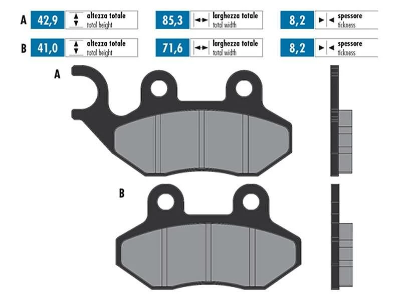 Die deutlich temperaturbeständigeren Sinter Bremsbeläge spielen ihre Vorteile auf der Rennstrecke und bei hohen Geschwindigkeiten aus. Dieser Polini Bremsbelag verfügt über eine KBA-Freigabe und darf legal auch im Bereich der STVZO als hochwertiges Ersatzteil eingesetzt werden. HxBxT: 42,9×85,3×8,2mm HxBxT: 41,0×71,6×8,2mm