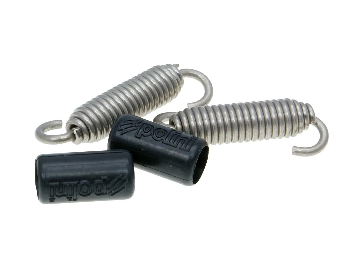 53mm lange Auspufffeder aus Edelstahl mit abgerundeten Haken und Gummihülle für verschiedene Polini Auspuffanlagen.