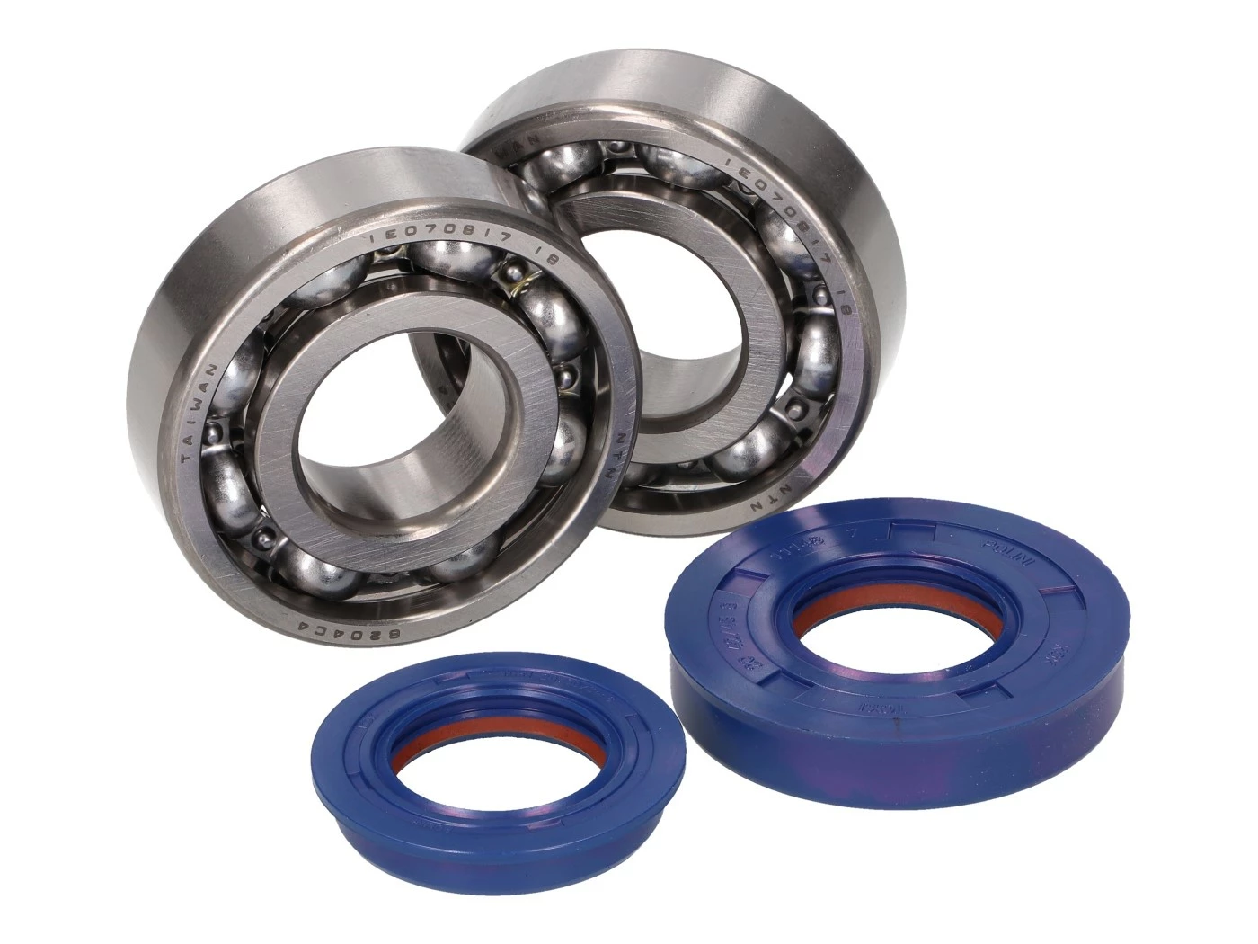 Hochwertige Kurbelwellenlager & Dichtringe für Minarelli Rollermotoren (CW, MA, MY, CA, CY) und deren Klone aus Asien (1E40QMB, IE40QMB). Der Polini Lagersatz mit Stahlkäfig kann in hochdrehenden Rennmotoren sowie in seriennahen Motoren gleichermaßen eingesetzt werden. Lieferumfang wie abgebildet.