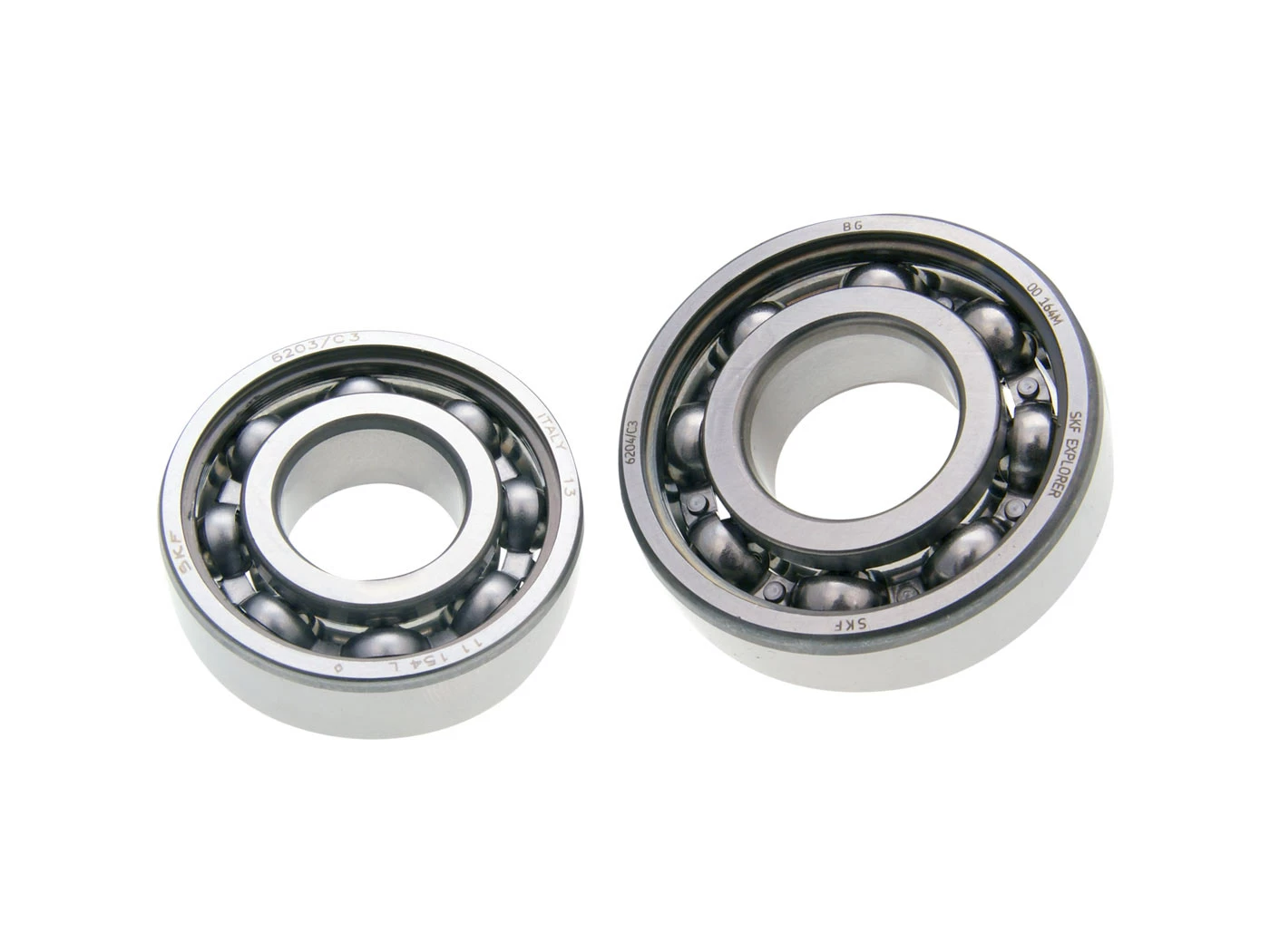 Hochwertige C3 Kurbelwellenlager für Peugeot 103, 103 SPX 50, 104, 105 sowie GL 10 Mofas. Der Polini Lagersatz mit Stahlkäfig kann in hochdrehenden Rennmotoren sowie in seriennahen Motoren gleichermaßen eingesetzt werden.