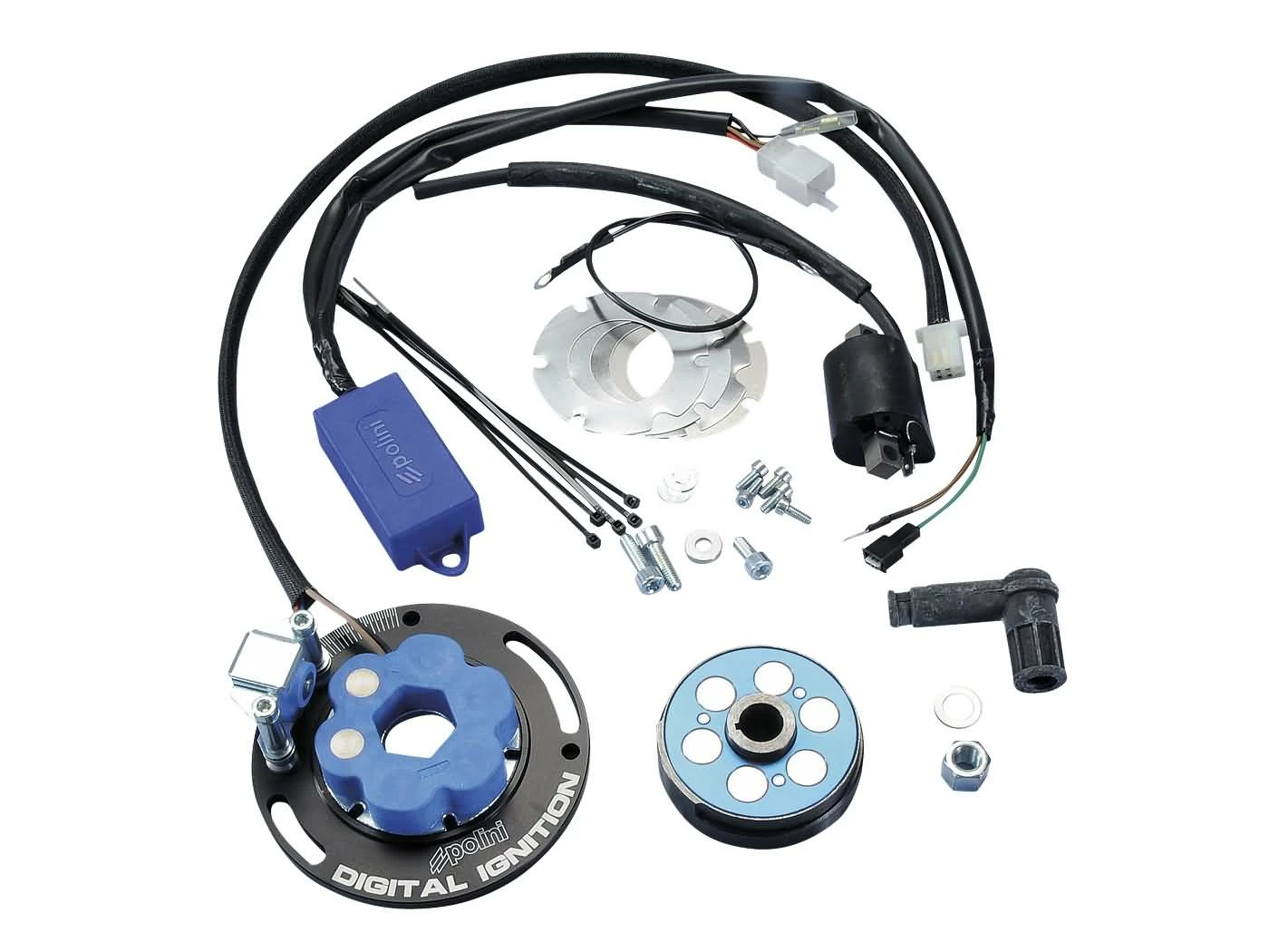 Die Polini Digital Ignition Racing-Zündung für Motorroller mit wassergekühltem Minarelli Motor.