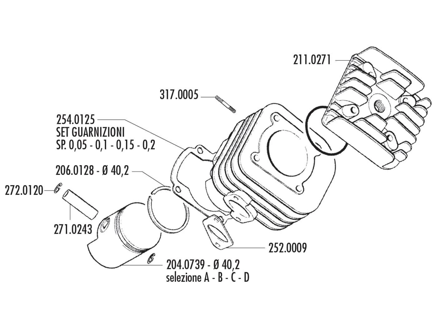 Der Zylinder hat eine Bohrung von 40,2mm und der Kolbenbolzen einen Durchmesser von 10mm.