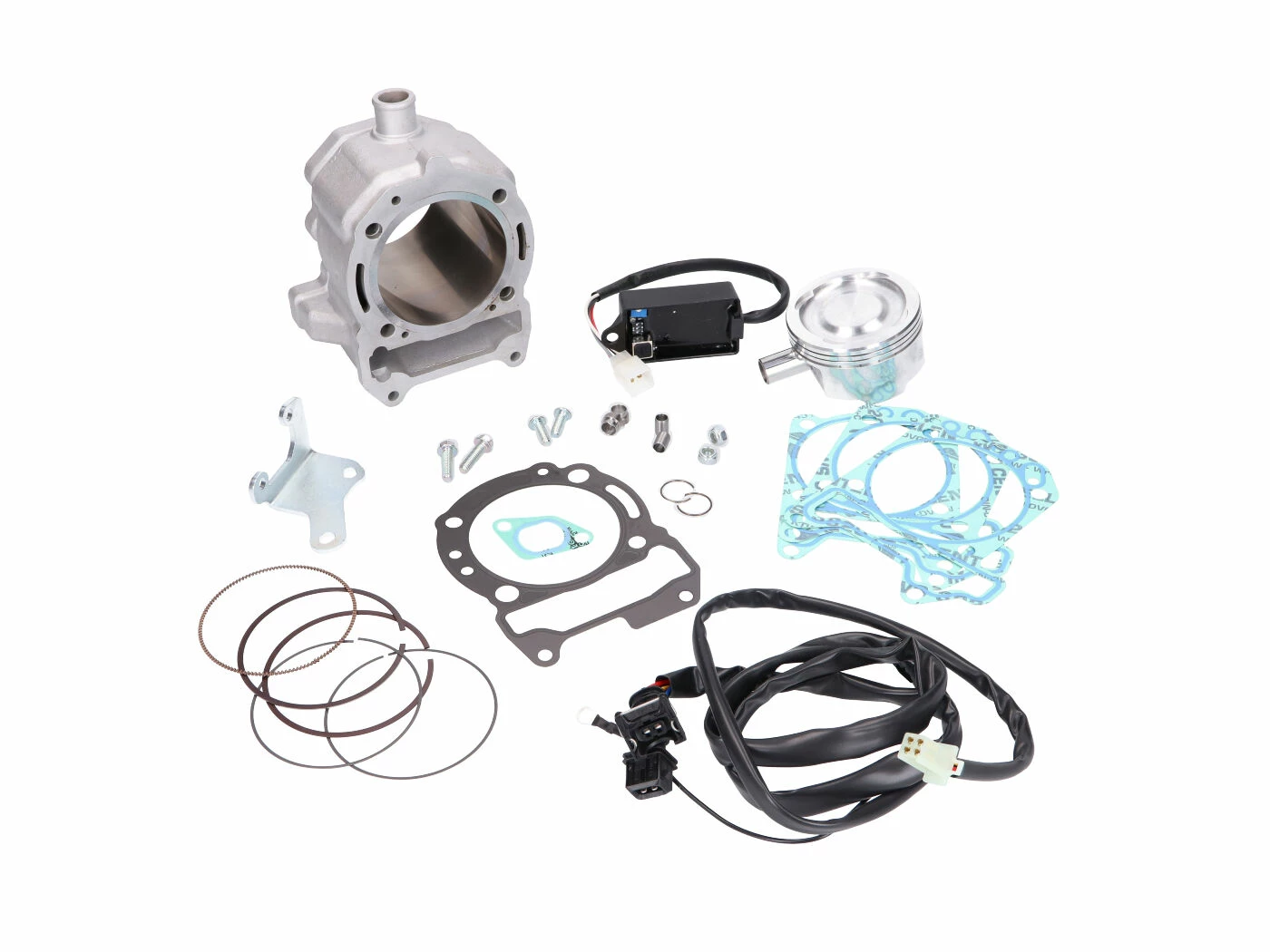 Polini setzt mit diesem Zylinderkit einen neuen Standard in Sachen Big Bore Tuning und lässt die Konkurrenz aus Italien hinter sich. Der Zylinder erfordert keinerlei Änderungen an Kurbelgehäuse oder Zylinderkopf. Der von Polini patentierte HTR-Ring an der Oberseite der Laufbahn sorgt für eine bessere Quetschkante und vergrößert die Auflagefläche der Kopfdichtung.