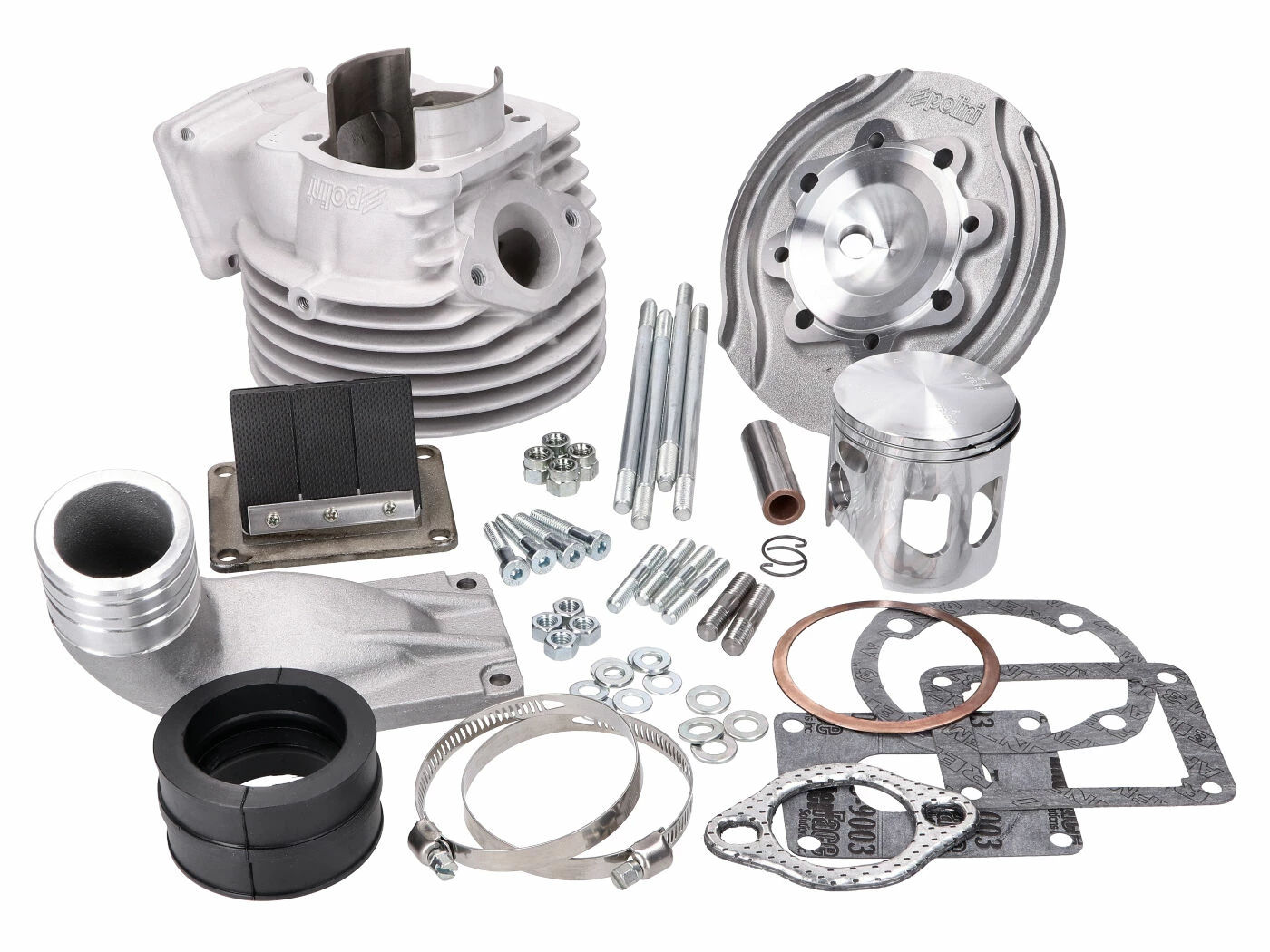 Um diesen Zylinderkit montieren zu können, muss das Kurbelwellengehäuse gespindelt werden. Es ist notwendig, die originale Kurbelwelle durch die neue Polini-Kurbelwelle, Art.-Nr. 210.0070, mit einem 105mm-Pleuel und 54mm Hub zu ersetzen.